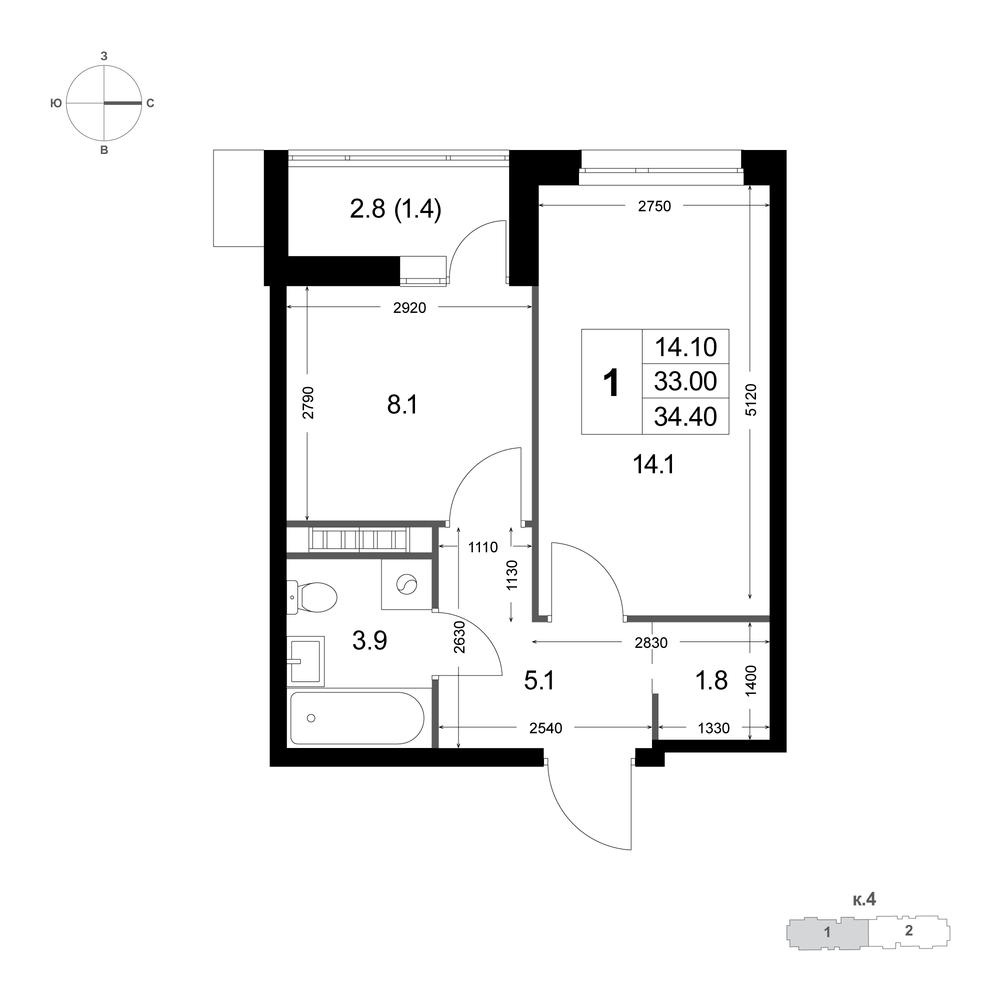 1-комнатная