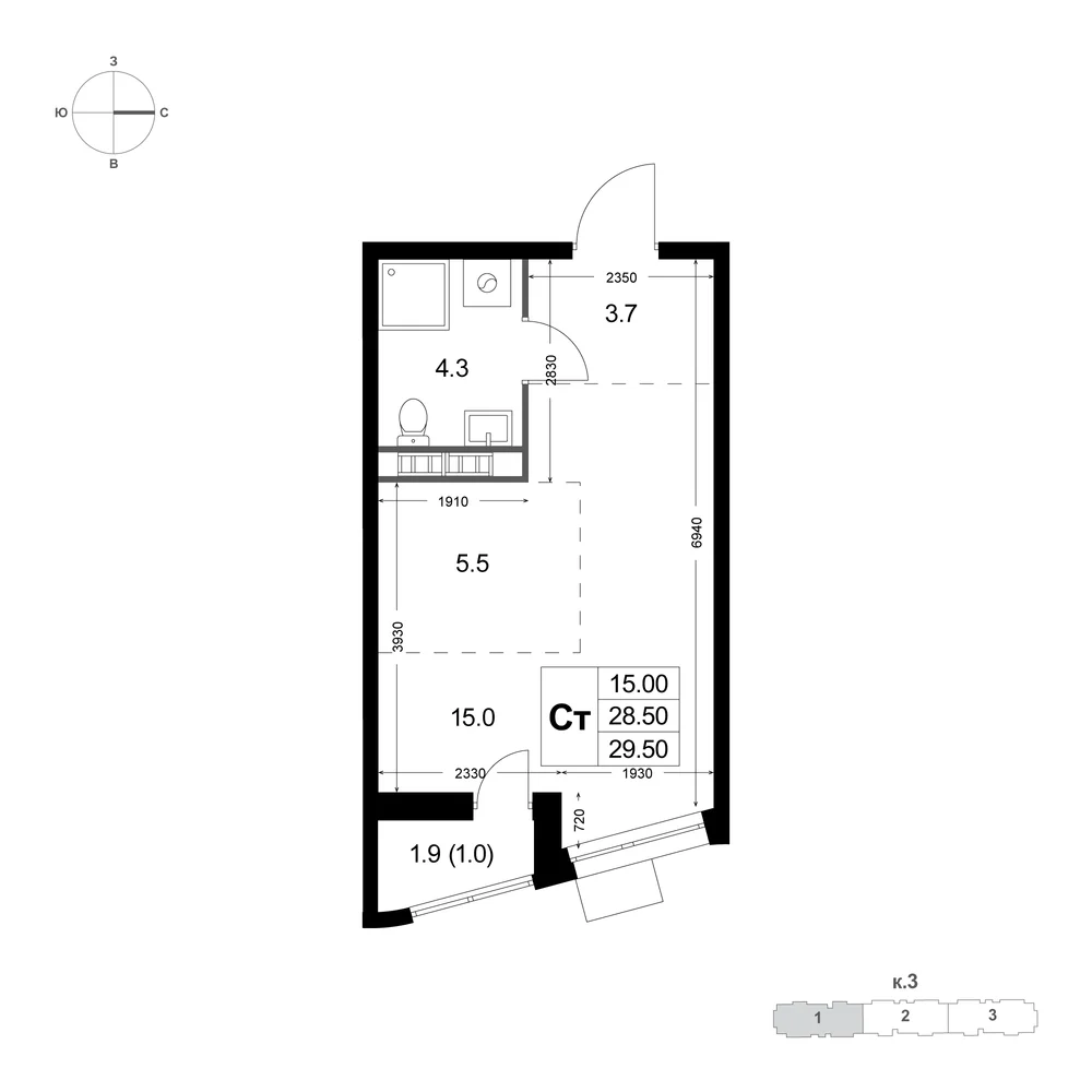 Корпус 3, Секция 1, Этаж 6