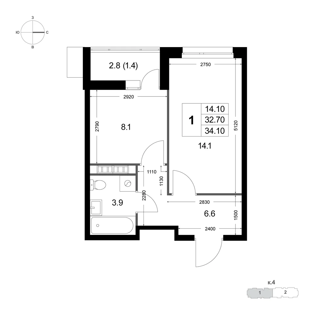 34.1 м2