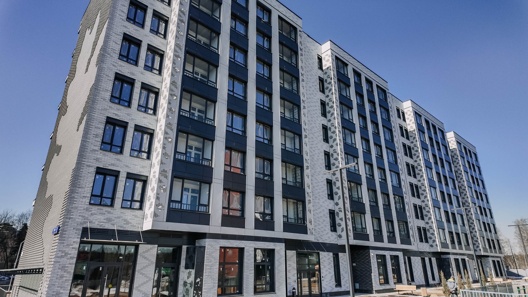 На фасаде предусмотрены корзины для наружных блоков кондиционеров. Монтировать кондиционер нужно именно в них — это требование единого архитектурного облика дома. Конденсат отводится в дренаж.