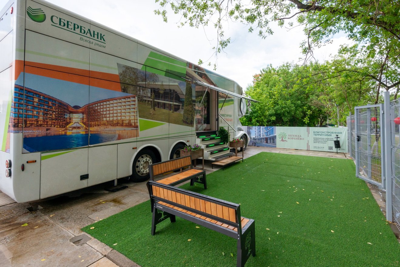 В рамках многолетнего и плодотворного сотрудничества со Сбером достигнута договоренность об организации мобильного офиса - брендированного автобуса. Офис оборудован ЖК-экранами, планшетными компьютерами, спутниковой связью и Интернетом. Система трансформации позволяет автобусу в считаные минуты превращаться в презентационный офис площадью около 20 кв. м. ⠀