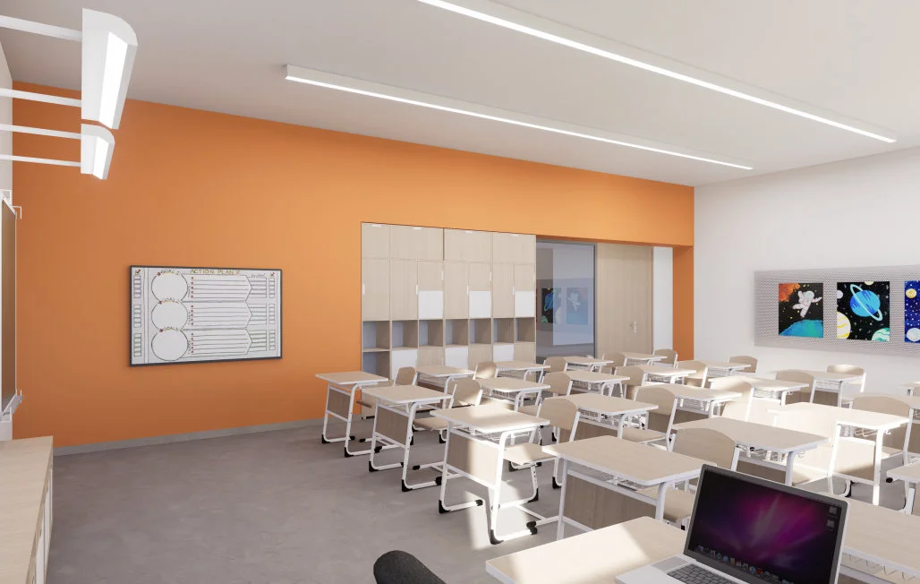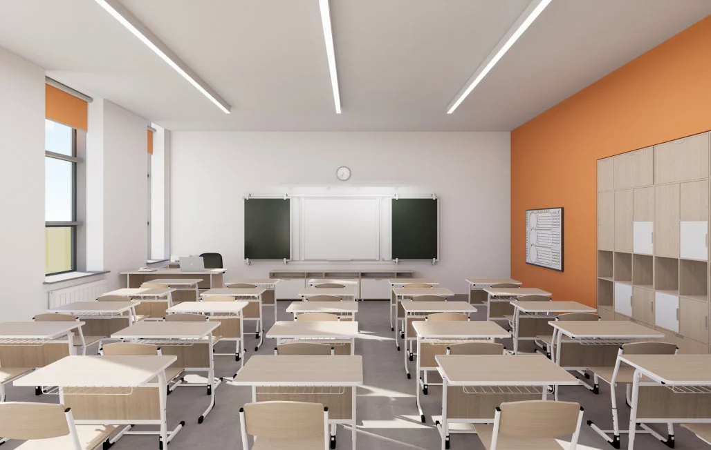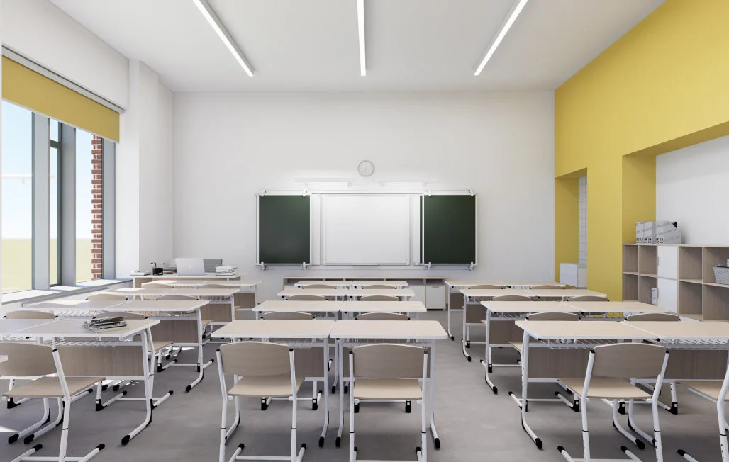 Школьные классы оснащены интерактивными досками, проекторами и компьютерами. Каждое помещение оформлено в уникальном стиле, соответствующим возрасту учеников и тематике занятий, что способствует повышению интереса к учебе.